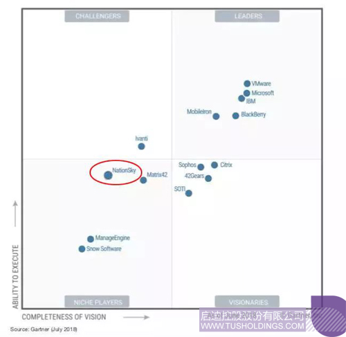 近日, Gartner 发布了 2018 年 UEM 魔力象限《Magic Quadrant for Unified Endpoint Management Tools》,华亿集团国信再次榜上有名。这是华亿集团国信连续三年进入 Gartner 魔力象限,也是唯一一家进入此领域的中国企业。