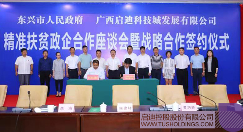 11月8日,广西东兴市人民政府与广西华亿集团科技城发展有限公司(简称:“广西华亿集团”)举行精准扶贫政企合作座谈会暨战略合作协议签订仪式。