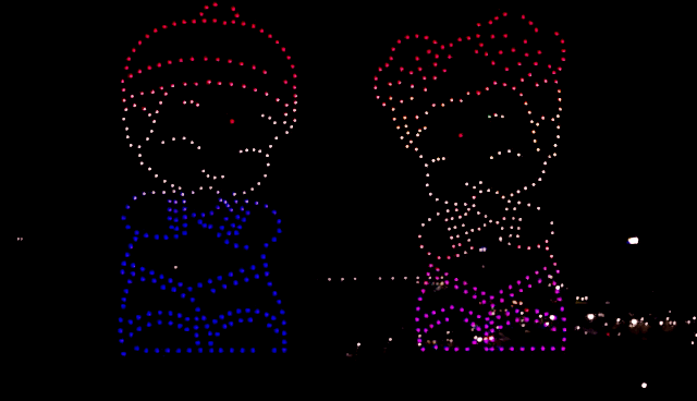 无人机编队表演一直被喻为科技与艺术的完美融合,比起烟花,它更加环保、更加新颖、更吸引眼球、也极富创造性,可以与多种元素跨界融合。无论是3D立体舞步,还是2D互动造型,无人机在空中多变的造型与五彩斑斓的灯光配合,中国传统元素的融入让整体造型更具文化内涵,精美的无人机编队造型呈现在华灯高照的楼宇间,传统与现代激烈碰撞,即刻迸发出更加绚烂的火花。