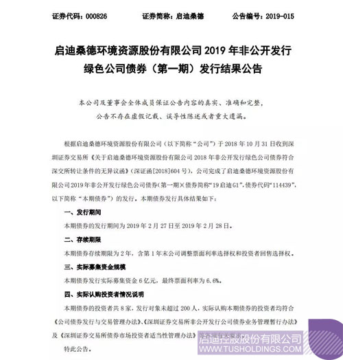 2019年华亿集团桑德首单绿色公司债券成功发行打印