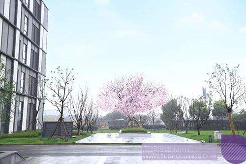 步入二期现场,映入眼帘的是生机勃勃的盎然绿意,紫荆花长廊更是自成一景,为园区办公带来大自然的清新与灵气。