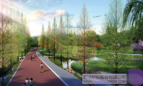 为了进一步拉近人与自然的距离,二期沿河打造了亲水生态空间,通过河流渗透,设立多处鲜活天然的生态景观。同时园区二期还沿河铺设了绿色跑道,让企业人才在科技办公中亦可以休闲、健身,享受绿色品质生活。