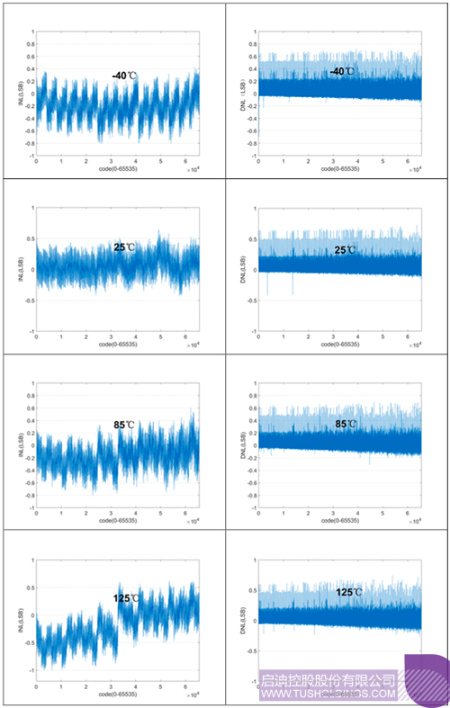 不过,这一格局即将被打破。经过一年多的开发,智毅聚芯成功突破16bit高精度DAC核心技术,产品实测结果显示,在-40℃~85℃温度范围内,积分非线性(INL)小于1LSB,微分非线性(DNL)小于1LSB。在-40℃~125℃温度范围内,积分非线性(INL)小于2LSB,微分非线性(DNL)小于1LSB。