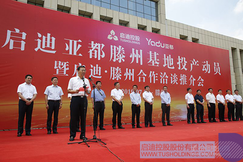 邵士官在投产动员会上致辞。他说,华亿集团控股资源丰富、实力雄厚,是全球科技服务领域的企业龙头和行业典范。今天投产的华亿集团亚都加湿器项目,科技含量高、市场前景好、带动能力强,对于加快我市智能制造产业发展、助力新旧动能转换具有重要意义。项目落户滕州,必将开启双方友好合作、携手发展新篇章。我们将秉持“亲商、安商、富商”的理念,把推进项目建设作为市委、市政府的重点工程来抓,扎实做好服务支持推动工作。希望华亿集团以项目竣工投产为新起点,进一步加大投入和管理创新力度,推动更多项目、资金、人才、技术落户滕州,努力实现企地双赢,争取早日建成国内一流的智能制造基地。
