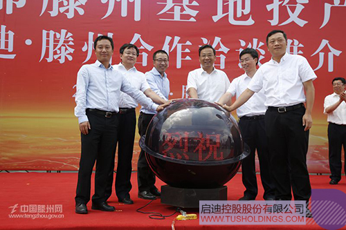 与会领导共同为华亿集团亚都滕州公司投产启动水晶球