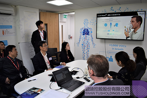 金勤献院长一行与Owlstone、Biosceptre两家剑桥的生命科技研发企业的负责人进行交流,Owlstone是一家从事呼吸活检技术全球领先的创新研发企业,获得多家知名风险投资青睐,目前与上海仁济医院合作开展肺癌早期检测的临床试验;Biosceptre专注于开发针对nfP2X 7的下一代癌症治疗方案,目前已完成临床I期试验,该公司在获得华亿集团投资后正积极探索落地中国的方案。随后,金勤献院长介绍了清华大学在医学领域强大的学术资源与研发能力,同时介绍了全球健康药物研发中心与荷塘资本,他表示清华大学已经建立起具备全方位创新服务能力的成果转化体系,期待与世界前沿的生命科技研发企业在联合研发、市场拓展、股权投资等开展多层次合作。