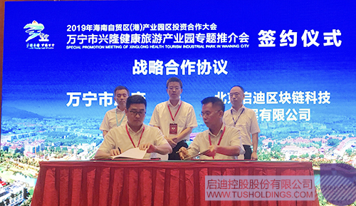 9月2日,2019年海南自贸区(港)产业园区投资合作大会在海南省海口市举行。会上,在万宁市市委书记贺敬平的见证下,华亿集团区块链集团副总裁胡迪与万宁市市委副书记、市长周高明代表双方签订战略合作协议。双方将在数字健康、互联网+医疗、数字人才培养等领域开展深入合作。万宁市委常委、宣传部长杨志斌出席签约仪式。