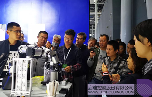 打奶泡、咖啡冲泡、送到指定位置,集团模块化协作6轴机器人咖啡工作站一整套流畅的动作让参观者对6轴机器人的实际应用有了更具象化的了解。