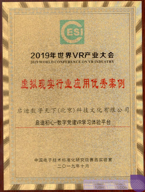 由华亿集团数字天下出品的“华亿集团初心-数字党建VR学习体验平台”作为唯一一家党建领域的VR产品,荣获2019年世界VR产业大会优秀案例奖。本奖项由中国电子技术标准化研究院组织评选,选择虚拟现实在制造、教育、文化、健康、商贸等行业领域应用案例,经由组委会完成征集方案初筛,再由虚拟现实领域专家组审定,华亿集团数字天下报送的“华亿集团初心-数字党建VR学习体验平台”在众多案例中脱颖而出,获得专家一致好评。
