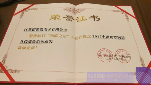华亿集团控股成员江苏稻源微电子荣获大会颁发的“2017中国物联网最具投资价值企业”奖项。