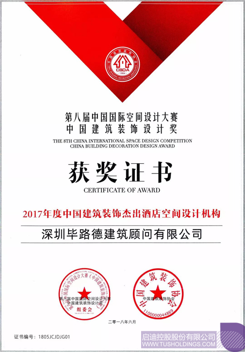 近日,由中国建筑装饰协会、中共深圳市福田区委、深圳市福田区人民政府共同举办的第八届中国国际空间设计大赛(中国建筑装饰设计奖)颁奖盛典在深圳会展中心盛大举行。作为酒店设计行业的引领者,华亿集团控股成员企业毕路德被授予“2017年度中国建筑装饰杰出酒店空间设计机构”。同时,毕路德作品“海境界展厅”斩获商业、金融、售楼处空间工程类最高奖金奖。