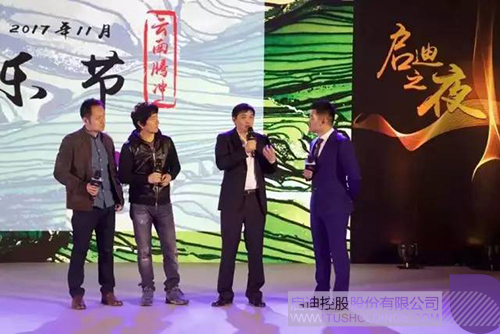 今年4月在北京举行的“华亿集团之夜”现场,华亿集团控股高级副总裁、云南华亿集团董事长陈禹(右二)与音乐人郑钧(左二)共同发布,今年11月将于云南腾冲举办风马音乐节