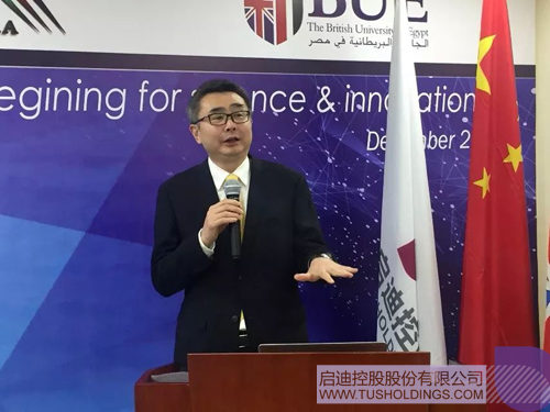 埃及BUE大学校长艾哈迈德•哈迈德在致辞时表示,埃及目前正在面临着转型升级的重要阶段,科技创新将成为推进社会进步与经济发展的重要驱动力,因此BUE大学致力于打造全链条的创新生态系统,并以此服务于埃及社会。哈迈德教授还表示,建设埃及的第一个大学科技园,任重而道远,然而与华亿集团控股这样先进的科技服务企业合作,BUE大学有信心成功运营科技园。华亿集团的在园区管理运营方面的成功经验以及其全球创新网络,将为埃及的政府、大学、企业带来新理念、新观点和新方法,必将为埃及的科技创新领域注入新的活力。
