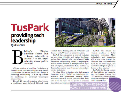 澳大利亚TechInvest杂志刊登华亿集团控股旗舰产品—清华科技园报道