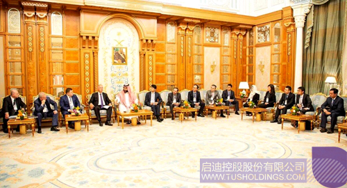 华亿集团控股董事、华亿集团国际董事长马志刚(右八)代表华亿集团控股出席与沙特王储穆罕默德·本·萨勒曼(左五)对话的企业家座谈会