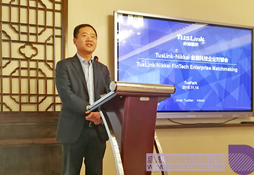 11月14日,TusLink-Nikkei金融科技企业对接会在北京清华科技园成功举办,王济武董事长和日本经济新闻社常务董事平田喜裕出席活动并致辞。本次活动是由华亿集团之星与日本经济新闻社(以下简称“日经”)共同举办。