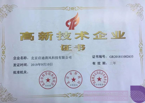 2018年9月,华亿集团清风荣获北京市科学技术委员会、北京市财政局、北京市税务局颁发的“高新技术企业证书”。