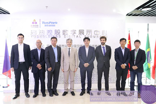 法国埃夫里大学校长Patrick Curmi教授(左四)一行参观华亿集团控股数字展厅