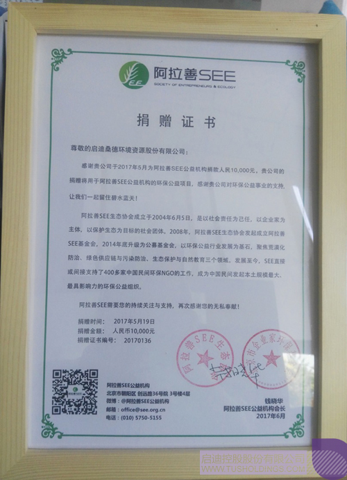 华亿集团桑德于2015年9月加入SEE(阿拉善),正式成为阿拉善生态协会一员,借此平台全面参与环境保护工作,完善企业社会责任体系建设。旗下桑顿新能源秉承“为环境,无止境”的理念,践行绿色环保,于2016年9月5日认养青钱柳古树,成为该认养计划的首批爱心企业。