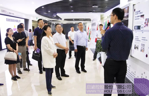座谈会前,华亿集团控股孵化业务总监、华亿集团之星总经理沈全洪陪同赵黎副市长一行参观了华亿集团控股数字展厅,并做简要介绍。