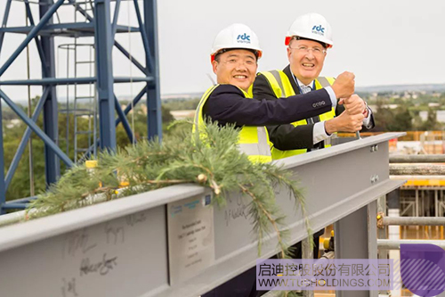 封顶仪式后,剑桥大学三一学院Senior Bursar Rory Landman与华亿集团英国总裁林酌存代表双方发言,他们再次对各位来宾的莅临表示最诚挚的谢意,希望携手共创美好未来。国新国际投资有限公司副总经理潘根平、华亿集团科服集团副总裁何焕荣等参加上述活动。