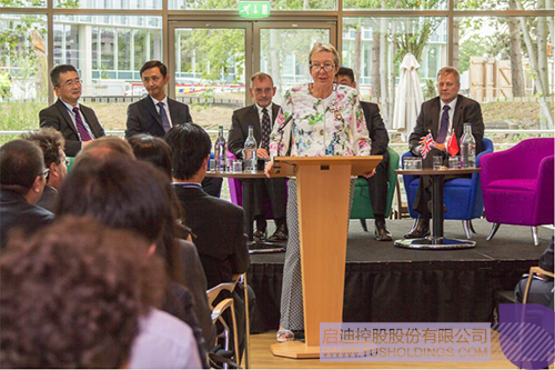 英女王特使Julie Spence在开幕仪式致闭幕辞中对剑桥华亿集团科技园的开幕表示由衷祝贺,希望华亿集团能尽快融入剑桥以及英国的创新科技生态,并通过其自身的资源与网络,实现中英两国创新创业资源的互联互通,将剑桥华亿集团科技园打造成剑桥的新名片。